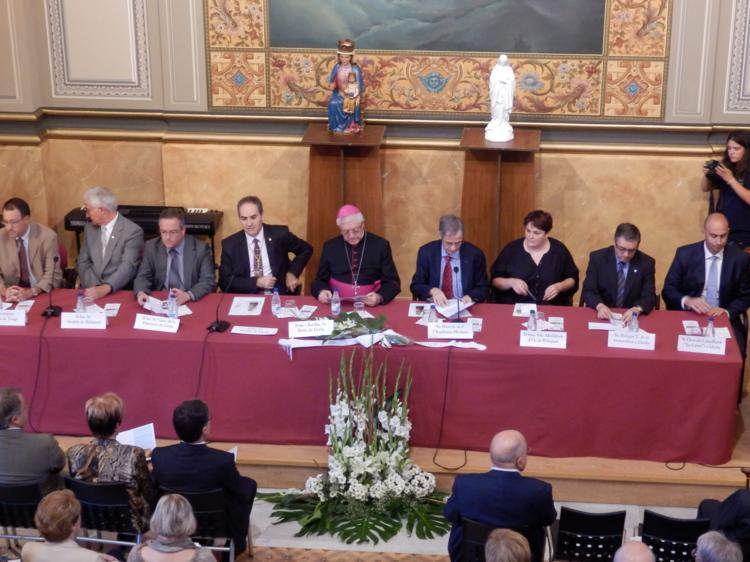 Entre el nombrós públic que omplia la sala noble del Paranimf s’hi distingia l’ampli col•lectiu de fills de Tragó amb Mossèn Jesús Tarragona, Mossèn Joan Mora i Mossèn Josep Meda. A banda i banda de la taula presidencial els seients s’havien reservat al Jurat i als guanyadors del Certamen. També al teatre de l’Acadèmia moltes persones van poder seguir l’acte acadèmic a través del circuit tancat de televisió disposat per la delegació de mitjans de comunicació el bisbat. El seu periodista Jordi Pérez i Marta Capdevila han presentat l’acte.