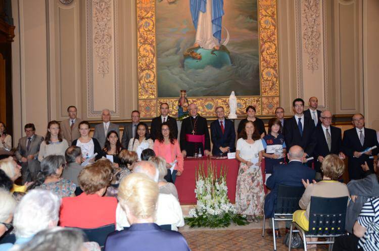 El segon moment important del Certamen ha estat el lliurament dels premis. Mª Piedad Martín, secretària de l’Acadèmia Mariana, ha llegit el veredicte del jurat presidit pel Dr. Xavier Terrado. En primer lloc els joves que guardonats en la nova categoria que s’ha obert en el Certamen d’enguany. A continuació la resta de premis que concedien diferents entitats i institucions i la flor natural, concedida pel Bisbe al millor treball poètic en vers dedicat a lloar la Mare de Déu. Després d’oferir la flor natural a la Mare de Déu del Castell en nom de Lázaro Dominguez Gallego, Joan Bellostas ha llegit el seu poema guardonat ‘A la Virgen María con devoción filial‘, després que Cruz Nevot i Mª Carme Sabador ho fessin de les dues mencions d’honor adjudicades.