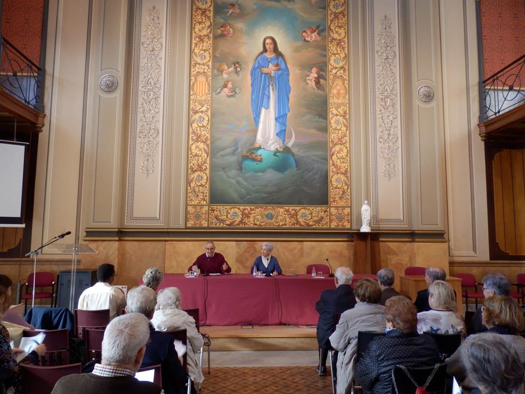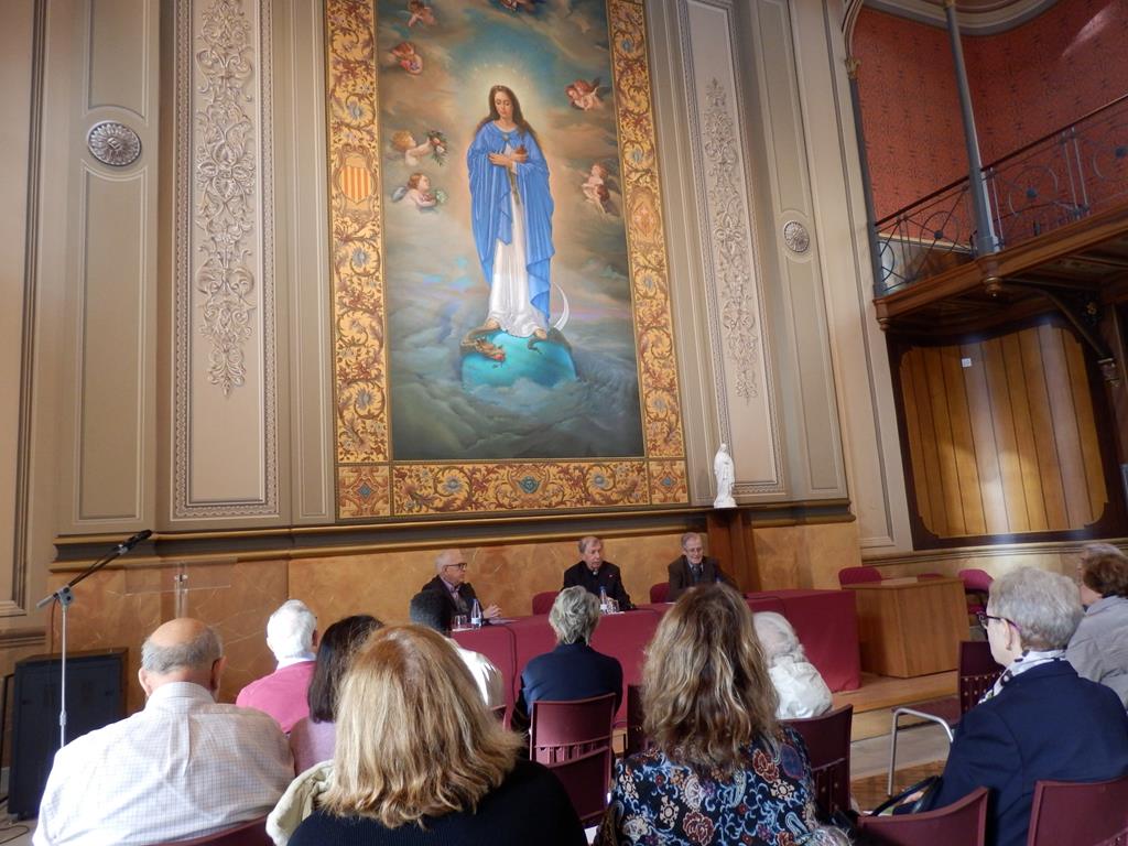 Dues ponències molt lluminoses han desenvolupat el IV Simposi Marià el segon dissabte de novembre.al paranimf de l’Acadèmia Mariana, presidit per Maria Immaculada, la nostra Verge Blanca de l’Acadèmia, coincidint amb el 70è aniversari de la celebració a Lleida del seu patronat. El Bisbe Salvador ha obert el Simposi després de la pregària inicial del claretià P. Jaume Sidera: “unim-nos a Maria demanant a Déu la Saviesa que ens doni el sentit i el gust del bé en la contemplació i ens llenci a l’acció amb el compromís de ser cada dia com Ella allò que som.”