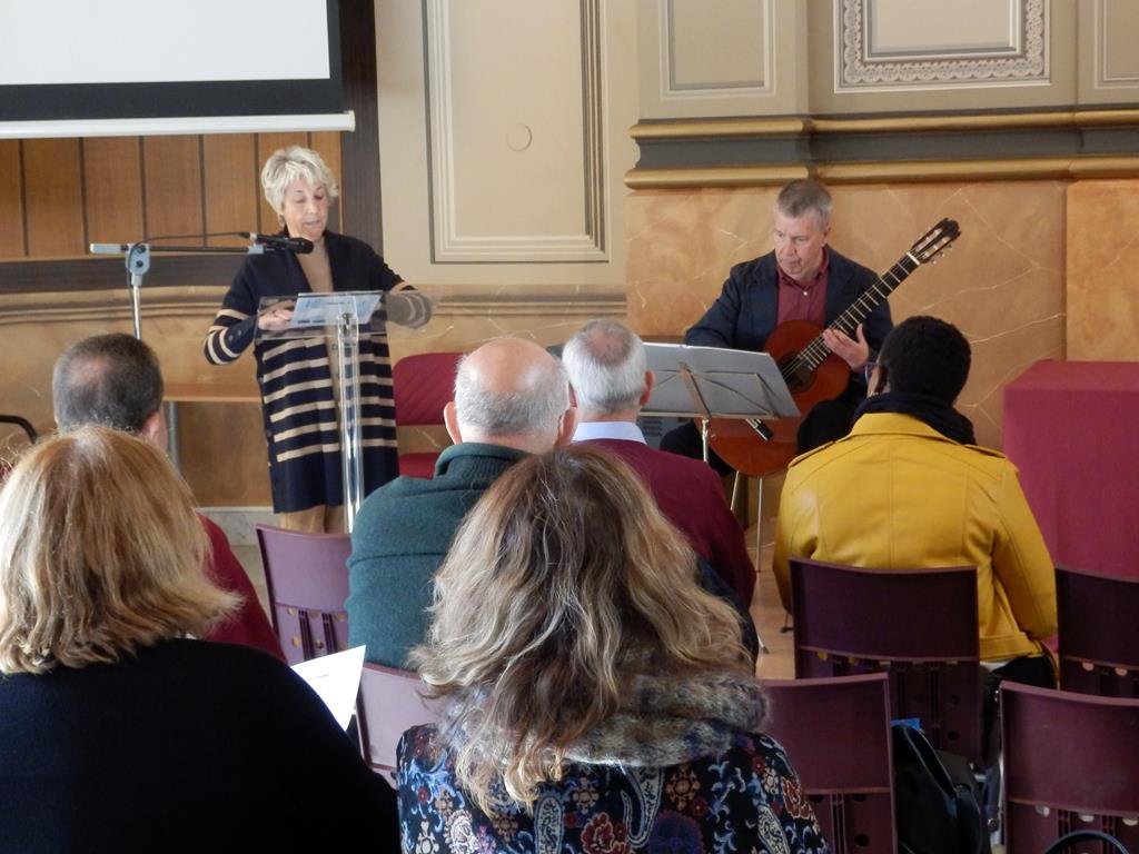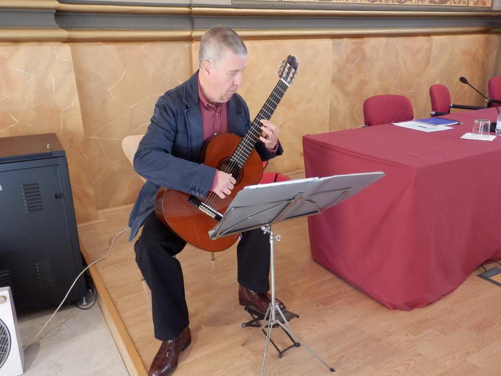 També Isidre Mercadé ens ha delectat interpretant amb la guitarra peces molt variades presentades per Francesca Agustí, la coordinadora del Simposi. Ha estat una gran aportació del cor i de les mans, amb una providencial coincidència de l’Ave Maria de Schubert amb el so de les campanes tocant a l’Angelus.