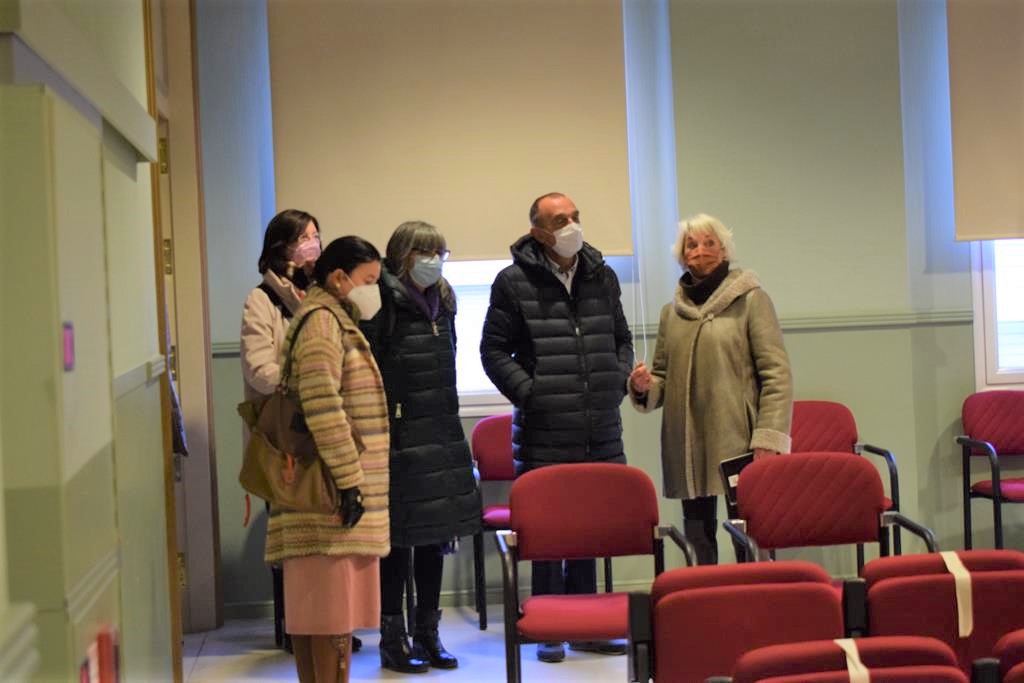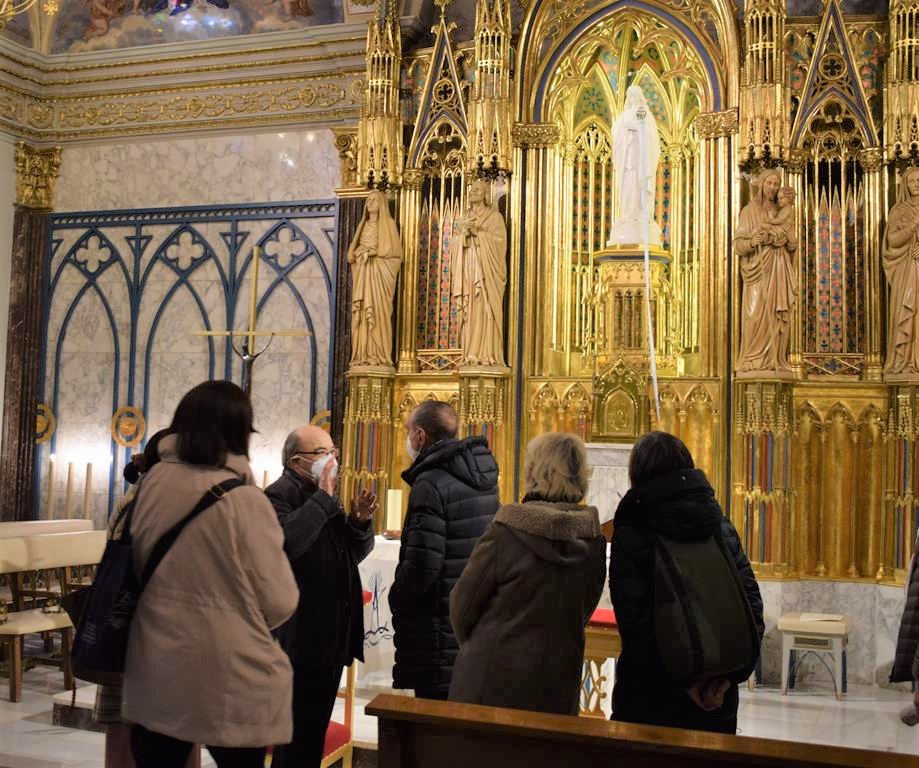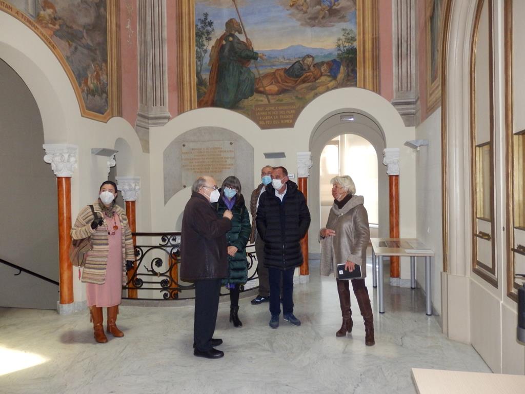 L’alcalde de Lleida, Miquel Pueyo, i la tinenta d’alcalde i regidora d’Educació i Cooperació, Drets Civils i Feminismes, Sandra Castro, han visitat aquest matí l’Acadèmia Mariana. El bisbe Salvador ha rebut als representants del consistori al vestíbul i, a continuació, han fet un recorregut pel Palau de Maria. A l’Oratori de la Verge Blanca, el seu capellà Mn. Gerard Soler ha explicat l’artístic espai de culte de la patrona de Lleida, remarcant la bonica història del cor de plata que du la seva imatge, així com la restauració del retaule efectuada pel CAEM l’any 2016, culminant la magna restauració, remodelació i ampliació de tot l’edifici promoguda pel bisbe Francesc Xavier Ciuraneta entre l’any 2002 i el 2006. La nova directora de l’Acadèmia Mariana, Yolanda Soria i la junta directiva de l’entitat, han acompanyat a les autoritats en la visita.