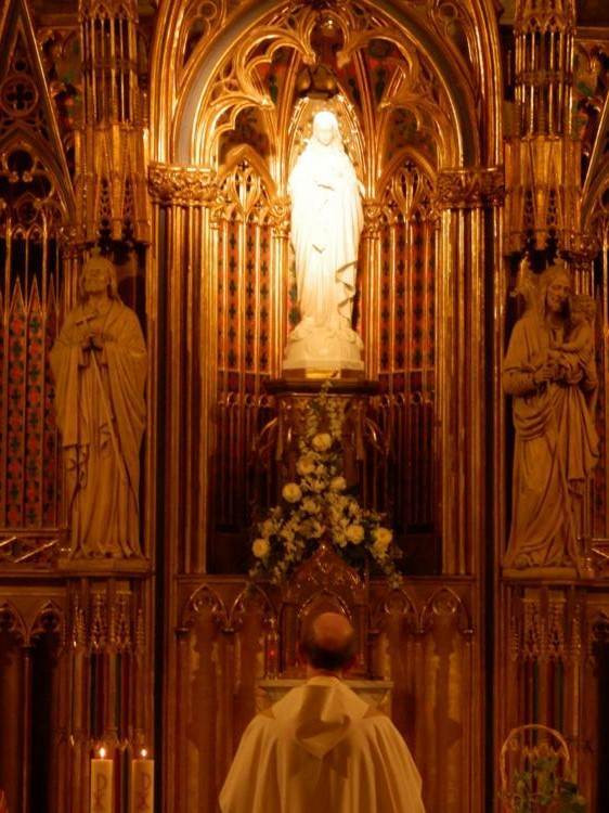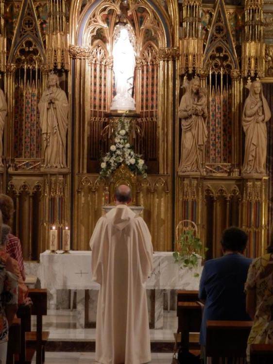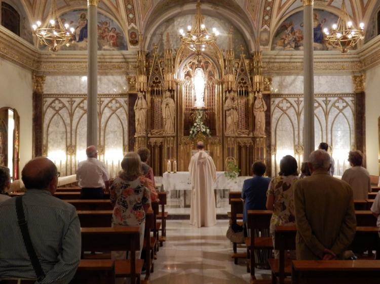 L’Oratori de l’Acadèmia Mariana ha acollit el Tridu horonant la Mare de Déu, com a preparació de la Festa de la Verge Blanca del proper dimecres 2 d’octubre. L’Eucaristia ha estat presidida per Mn. Antoni Agelet, responsable de la litúrgia de l’Acadèmia Mariana, i ha comptat amb l’acompanyament musical de la Coral Units pel Cant, dirigida per la Sra. Antonieta Melé. La Coral està integrada per uns divuit cantors que, darrerament, han ubicat els seus assajos setmanals a l’Acadèmia Mariana. És per aquest motiu que han tingut la gentilesa de solemnitzar les celebracions litúrgiques del Tridu en honor a la Verge Blanca de l’Acadèmia.